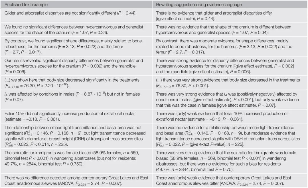 [1]. Stefanie Muff et al. Rewriting results sections in the language of evidence, Trends in Ecology & Evolution, 2021.11